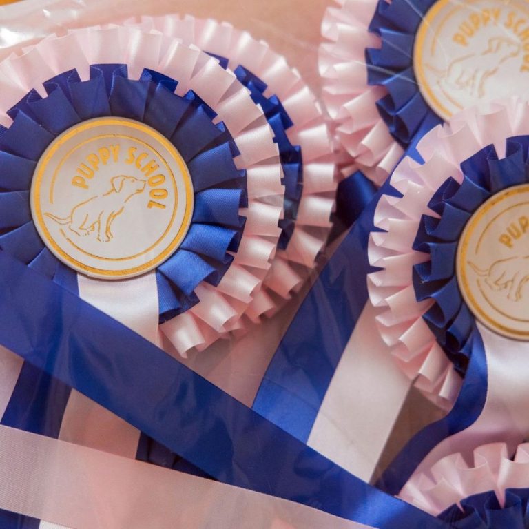 Celebrate your puppy’s achievements! On completing the course, they’ll be awarded a certificate and rosette in class, a lovely memento of their early training